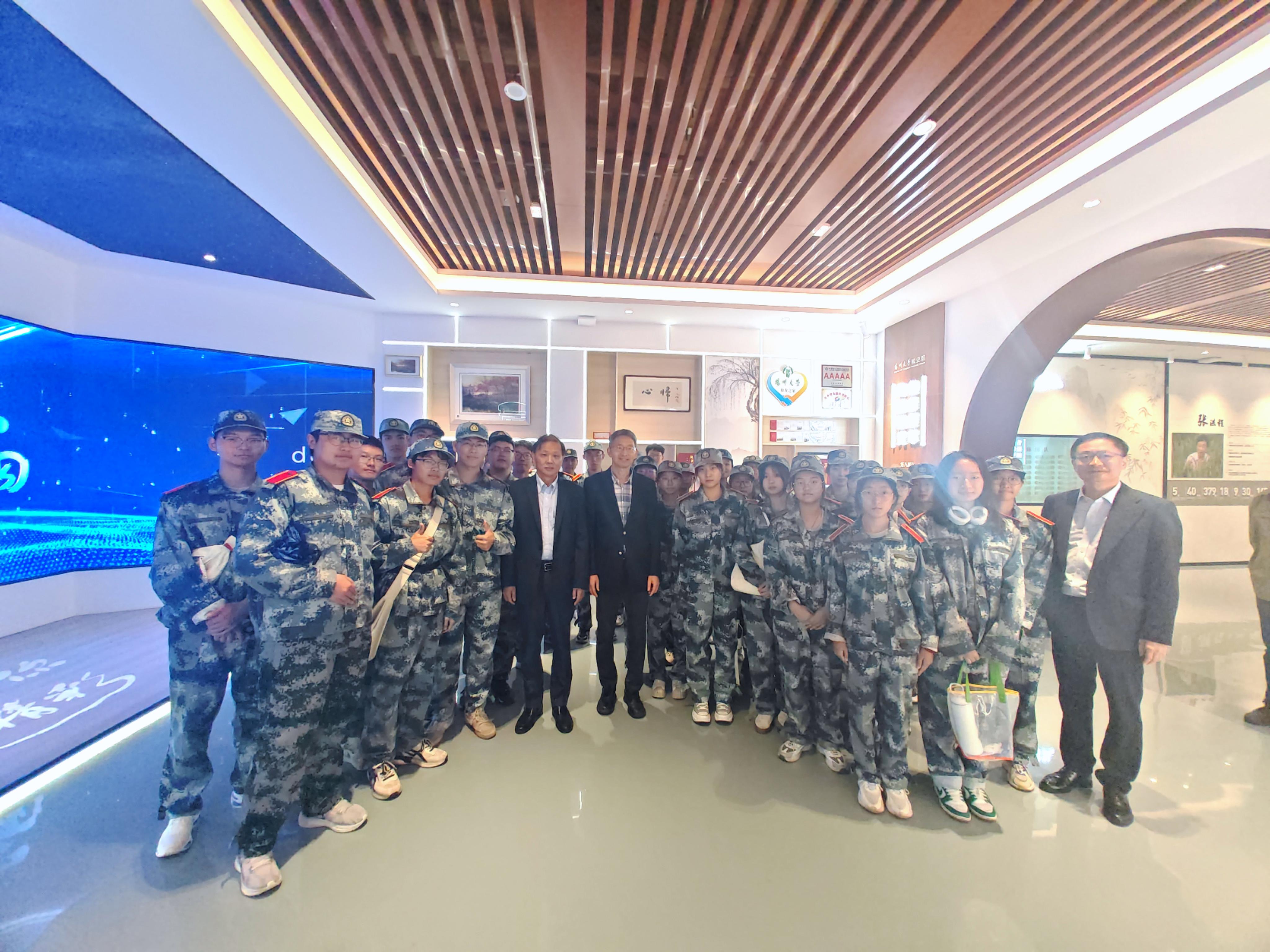 陈克勤陪同李毅、严六零校友参观了校友之家和新建成的扬州大学校史馆,介绍了校史馆建设情况、校友会主要工作及发展情况。在校史馆,两位校友与兽医学院2024级本科新生进行了互动交流,并寄语同学们珍惜青春韶华,传承校训精神,在扬大成长成才。