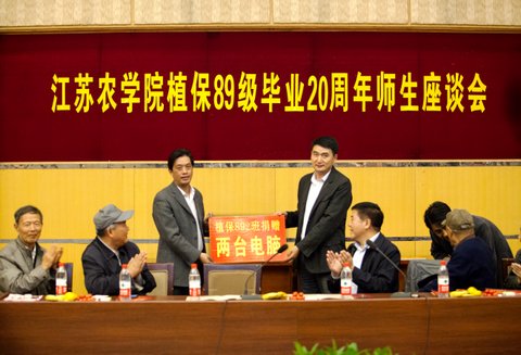 2013年10月19日,植物保护89级校友60余人毕业20周年返校,在荷花池校区教学主楼二楼多功能厅举行了师生座谈会。与会校友汇报了自己的事业发展历程及近况,并捐赠了5万元和两台电脑,以表达对母院的感激之情。学院主要领导、植物保护系教师及部分离退休老同志等20余人参加了座谈会。其间,校友们还参观了曾经熟悉的校园内学习和生活场所。
