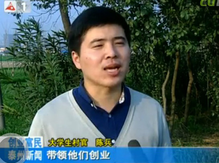 陈兵是我校广陵学院工商管理专业2011届毕业生,毕业后被选聘为大学生村官,担任泰兴市虹桥镇上元村党总支副书记。