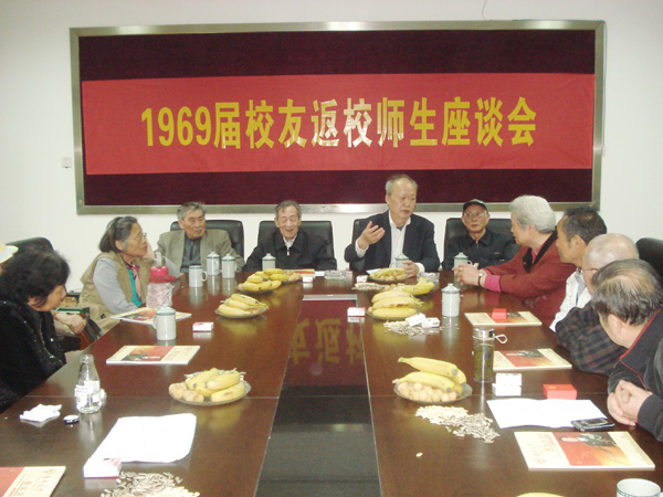 2014年5月10日,文学院中文1969届一班15位校友返回母校举行毕业45周年师生座谈会。文学院院长柳宏、党委副书记刘佳,校对外联络办公室副主任王志健和部分老教师应邀参加座谈会。对于此次返校聚会活动,校友们非常珍惜,虽大多年近古稀,但却克服种种困难和不便返回母校,特别是杨化菊校友甚至从济南坐着轮椅赶来聚会,以实现回到母校、看看老师、看看同学的梦想,感人至深。