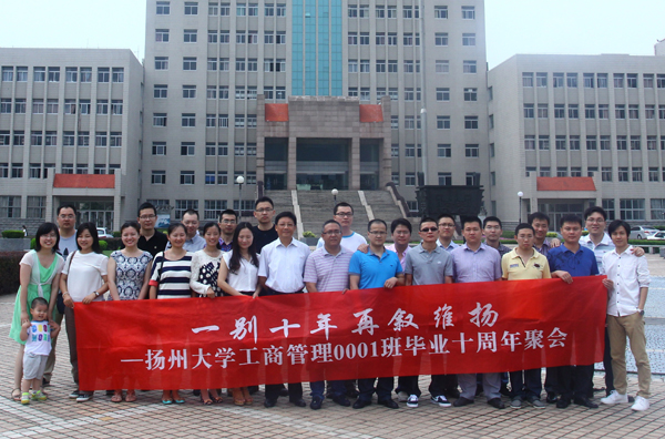 光阴似箭,岁月如梭;往事难忘,温馨如故。十年的分别、十年的牵念,给了校友们返校聚会的足够理由!为纪念一起走过的日子,为祝福今后的每一天,2014年6月22日,商学院工商管理0001班25位校友带着毕业十年的回忆和奋斗十年的感悟再次来到熟悉的校园。商学院副院长、班主任钱斌老师和大家一起开了一场主题班会,回忆过去,感悟成长,展望未来,校友们畅所欲言,道出了对母校的思念、对恩师的感激,同时表达了对美好未来的信心和决心。