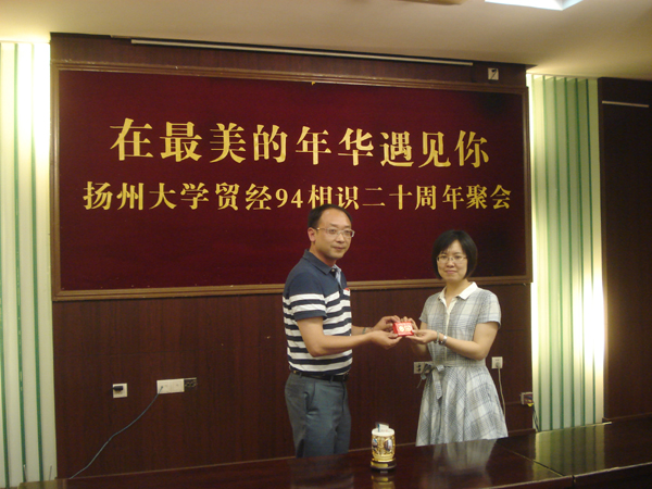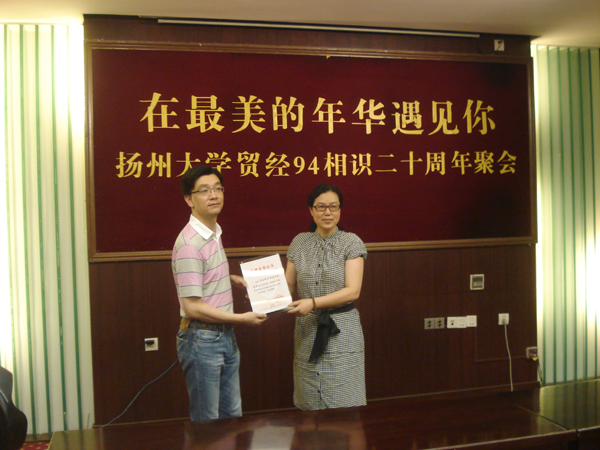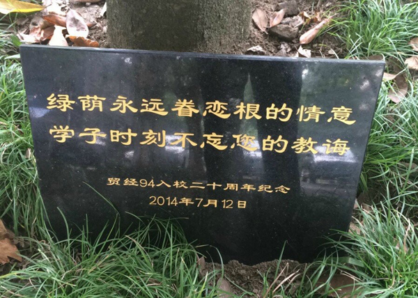 为表达对母校和教师的感激与祝福,贸经1994级全体同学向母校捐赠3000元认捐了瘦西湖校区的一棵白玉兰树,并在纪念牌上刻下“绿荫永远眷恋根的情意,学子时刻不忘您的教诲”,表达对母校和教师浓浓的感恩之情。陈耀副校长向校友代表颁发了《捐赠荣誉证书》,王庆林秘书长向校友们赠送了校友徽章。