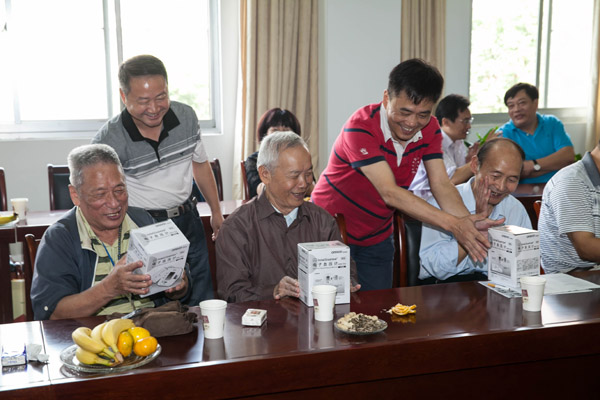 在活动中,叶柏森副校长作为建81级校友的同年级同学,深情回忆了当年在校学习、生活的历历往事,并向校友们介绍了学校近期的发展情况。建筑科学与工程学院院长肖鹏向校友们汇报了学院的改革发展历程,尤其是建院十多年来学院的巨大变化。吴建中、张维、姜荣贵、夏树滋等授课老师都已年届80高龄,也一一回忆了当年执教的情景。校友们播放了精心制作的PPT课件,向师友们回忆自己的求学往事,介绍现在的工作生活情况,并向老师们赠送了电子血压仪。整场活动气氛热烈,温馨感人。在随后的聚餐上,吴建中老师用俄语为大家深情演唱《莫斯科郊外的晚上》,更是将气氛推向高潮,大家都沉浸在浓浓的师生情、同窗情中。