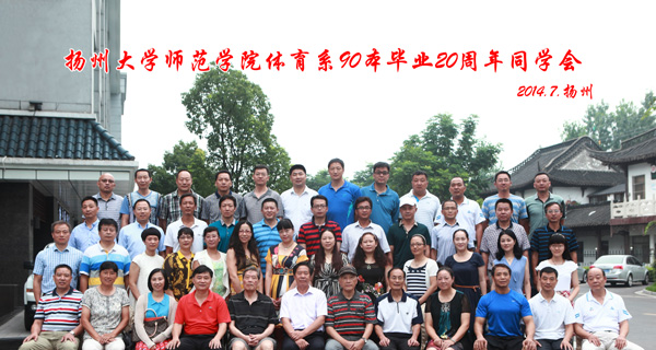 2014年7月26日,体育学院体育教育专业1994届36位校友毕业20周年返校聚会。大家相聚在瘦西湖畔,再续同窗情谊,体育学院副院长李仪、班主任陆阳、院综合办公室主任尹者金及部分任课教师代表应邀参加相关活动。