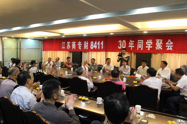 2014年9月19日至20日,原江苏商专财8411班35位校友返回母校,举行毕业30周年聚会活动。商学院党委书记凌云志、院长谢科进,校对外联络办公室副主任刘春秋,班主任和部分任课教师等应邀参加相关活动。