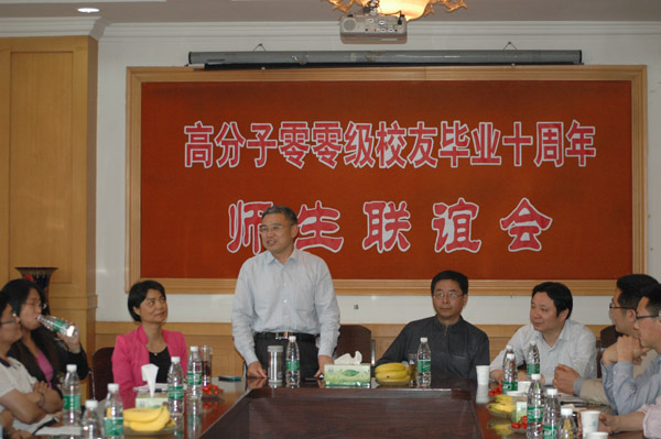 2014年5月17日,高分子专业2000级40名校友相聚母校,举行毕业10周年师生联谊会。胡效亚副校长、化学化工学院全体党政领导和部分老师应邀出席。联谊会上,胡效亚副校长代表学校和母校师生发表热情洋溢的讲话,他向校友们介绍了学校在综合竞争力、教学科研、师资队伍、办学条件、人才培养等方面所取得的成就和未来发展规划,并表达了对校友们返校的诚挚欢迎和美好祝愿。大家共叙师生情、同学谊,校友们感恩于学校的培养,感恩于恩师的辛勤教诲,对学校的巨大变化和发展感到由衷欣慰和鼓舞,并就人才培养、毕业生择业、职业规划等提出了建议,同时祝愿母校各项事业蒸蒸日上,突飞猛进。