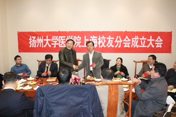 2014年12月27日,扬州大学医学院上海校友分会在沪成立。校党委副书记、纪委书记刘延庆,校友总会副秘书长刘红斌,医学院院长史宏灿、副院长鞠永熙以及24名校友代表出席会议。医学院党委书记王炜主持会议。会议选举产生了医学院上海校友分会第一届理事、常务理事、会长、副会长和秘书长。