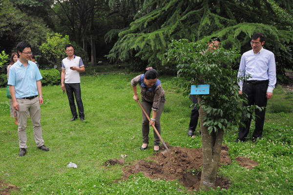 座谈会开始前,师生们合影留念,并在生技楼前共栽“幸福树”,以感谢学院的培育之恩。