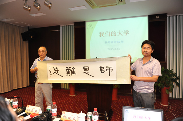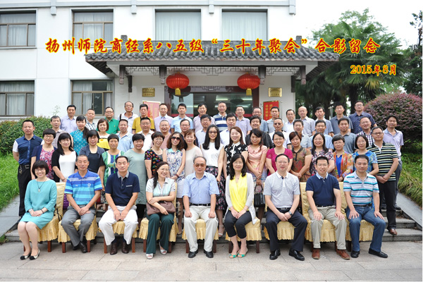 2015年8月14日至17日,原扬州师范学院商经85级的同学们怀着对母校深深的眷恋,对昔日恩师深切的思念,从全国各地回到了朝思暮想的母校。66位同学相聚在瘦西湖校区,在这短短的3天时间里,参观了扬大校园,学习翻阅了《扬州大学校友手册》,为母校建设高水平地方综合性大学所取得的成就倍感骄傲和自豪。