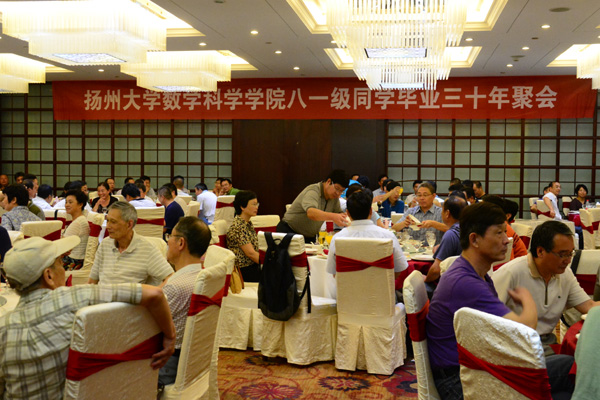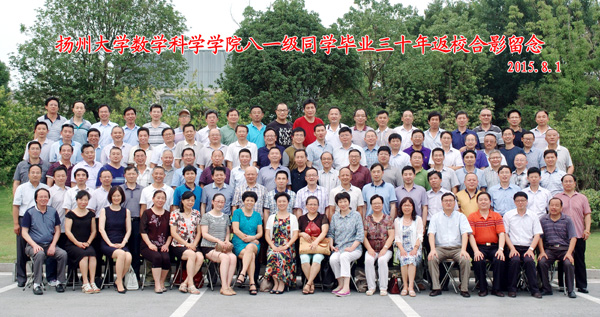 2015年8月1日至2日,原扬州师范学院数学系81级同学毕业30年返校活动在扬州如期举行,来自国内、外的近100位同学与30多位老师和母校、母系领导欢聚一堂,享受这来之不易的美好时光!如兄弟姐妹般的同学相聚,让大家感觉分外温馨。