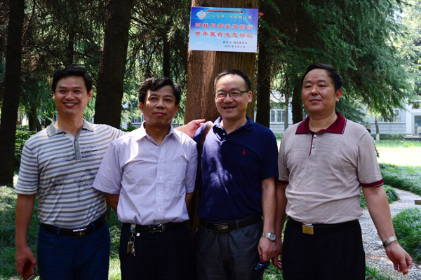第二天活动是重游瘦西湖和校园,瘦西湖的景色秀丽宜人,让大家流连往返。看亭台楼阁、景色不断变换,湖面波光粼粼;听微风吹拂,湖面荡漾起阵阵波涛。大家感到无比兴奋,如同回到三十年前那充溢青春与活力的岁月!专业摄影师给大家拍照留念,把愉快与激情定格。作为对母校回忆的寄托,全体同学一致同意,并在当年读书的教学楼前,认捐一颗“校友林”班级树。