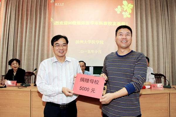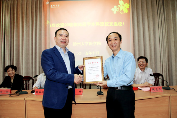 2015年10月17日至18日,医学院1990级临床医学本科班毕业20周年返校联谊活动在扬州举行,该专业56名校友返校。医学院党委书记王炜、副院长鞠永熙,班主任周斌、陈牧、严晓萍、乔萍等老师参加联谊会。
