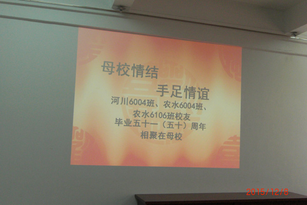 在校、院的大力支持和校友们的共同努力下,农水6004班、河川6004班、农水6106班纪念毕业51(50)周年聚会于2015年12月7日至8日在母校举行。来自全国各地的30多位校友带着对母校的深情和岁月的沧桑来到扬州、回到母校,不少校友是毕业50多年来第一次相见,尤为激动。