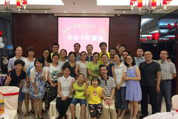 2015年7月17日至18日,数学与应用数学0103、0104班校友毕业十周年返校。重返母校,校友们看母校变化,寻当年记忆,纷纷在校园里驻足留影。数学科学学院党委书记刘长龙,党委副书记花瑞锋,该班班主任、院团委书记朱鑫铨及部分任课老师参加了校友们的聚会活动。