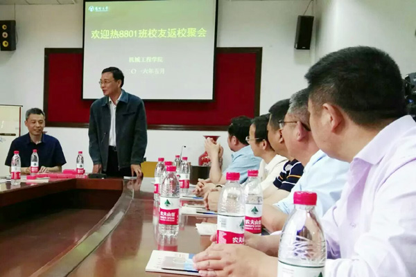 石榴花开红似火,树木葱茏绿成荫。2016年5月7日,热8801班校友在毕业25周年之际重返母校相聚,机械工程学院院长张剑峰、校友总会副秘书长王志健、社会合作与服务处副处长陈荣发、机械工程学院团委书记张平及部分任课教师应邀参加相关活动。