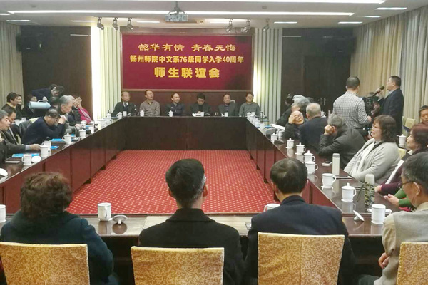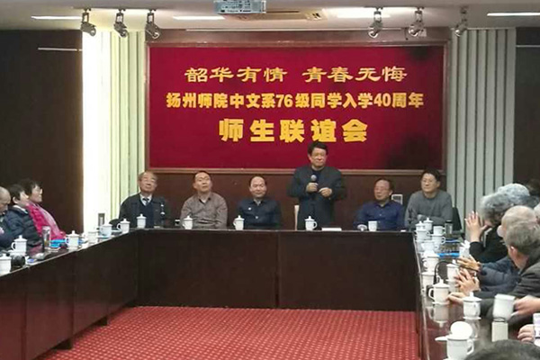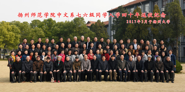 2017年3月4日,中文系76级校友入学40年返校纪念活动在瘦西湖校区虹桥专家楼举行,来自省内外的近70名校友返回母校参加活动。校党委书记姚冠新,校长焦新安,校友总会秘书长王庆林,文学院党委书记顾松明、院长陈军以及部分当年的任课教师应邀出席活动。