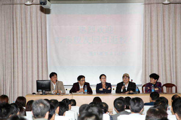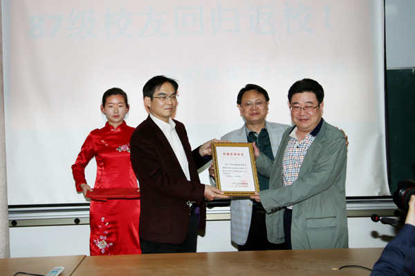 活动在校友祁付珍饱含深情的朗诵《同学赞》中开始,“找一个理由,和同学见一面,不为别的,只想一起怀念过去的岁月……”鞠永熙代表学院对返校的校友们表示热烈欢迎,他向校友们介绍了近年来学院的发展概况和取得的成绩,期盼校友们继续关注、关心和支持母校、母院的发展,并向校友们颁发了校友徽章。朱莉、秦旭、孙沛毅三位老师作为教师代表分别讲话,追忆和同学们相处的美好时光,感谢校友们对母校的关注、关心,并希望校友们在各自岗位认真工作,继续为母校的发展献言献策、贡献力量。