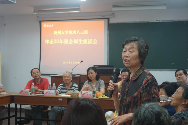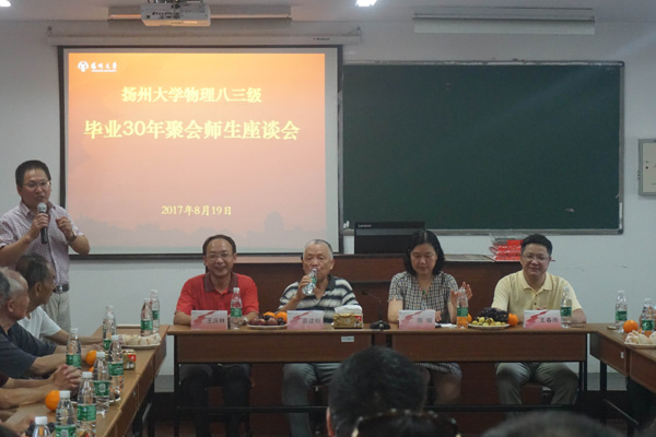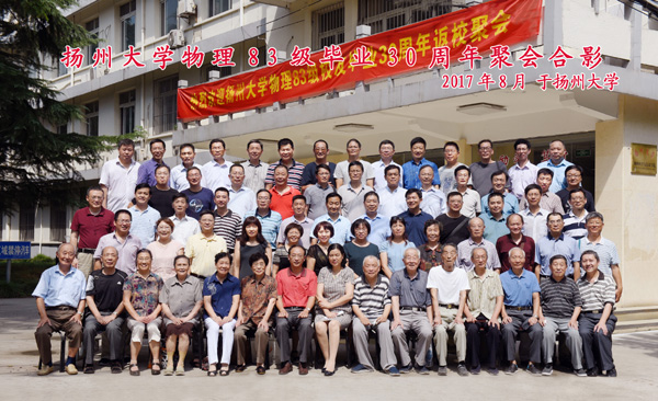 阔别三十载,今朝又重逢。2017年8月19日上午,物理83级校友相聚母校,共同追忆求学时光。扬大基金会理事长、校友总会副会长、对外联络工作委员会常务副主任陈耀,校友总会秘书长王庆林,物理科学与技术学院全体院领导及教师代表与校友共聚一堂,忆往昔,话未来。