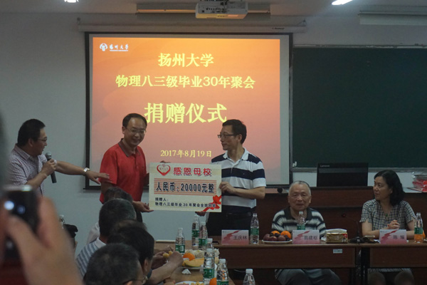 会上,校友们向母校捐赠2万元用于支持学院物理学科建设。