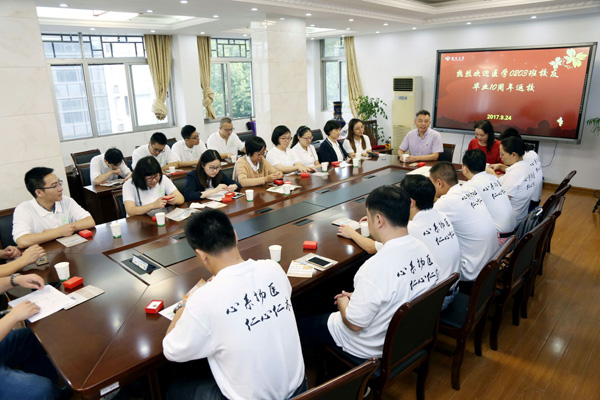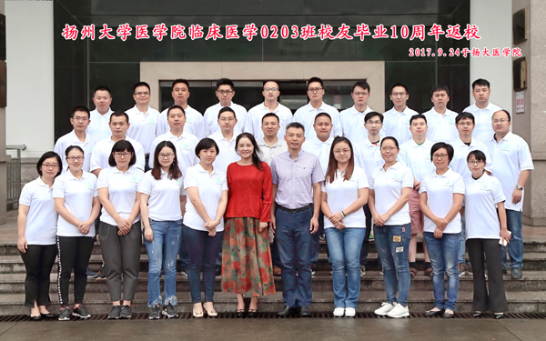 2017年9月23日至24日,医学院2002级临床医学0203班校友毕业10周年返校聚会。校友们回到阔别已久的母校,参观了校园,在曾经生活的熟悉的校园里合影留念,记录美好瞬间。校友会办公室负责人,原辅导员、班主任王芬等老师出席活动。