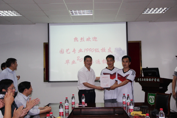 大学四年挥洒青春 毕业廿载感恩母校——园艺90级校友毕业20周年返校聚会 2014年7月4—6日,园艺901、902班57位校友从全国各地返回母校团聚,举行毕业20周年纪念活动。陈国宏副校长,校对外联络办公室主任王庆林,园艺与植物保护学院党委书记夏泽清、院长杨益众等学院领导和部分教师代表应邀参加相关活动。