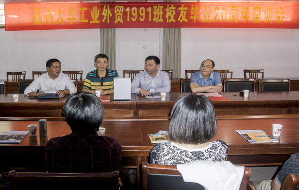 岁月如歌致青春——工业外贸1991班毕业20周年返校聚会 2014年10月3-4日,工业外贸1991班18位校友在毕业20年后又回到了母校。商学院党委书记凌云志、副院长汤学俊,校友会副秘书长王志健,部分老领导、班主任、任课教师代表等应邀出席相关活动。