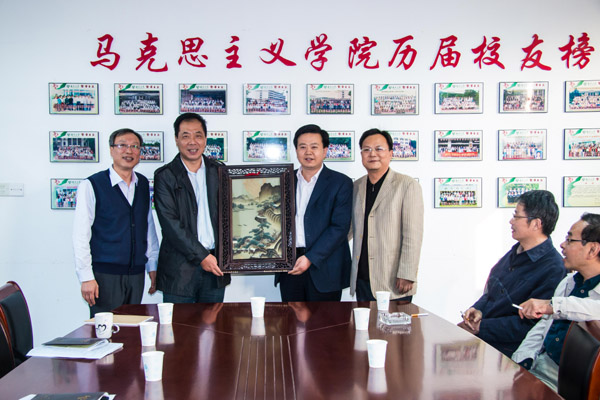 2014年10月2日,政教1984级校友返回母校纪念进校30周年。马克思主义学院领导、部分老领导、老教师应邀出席相关活动。为了表达对母校的感恩之情,校友们向母院赠送了漆器台屏一件。