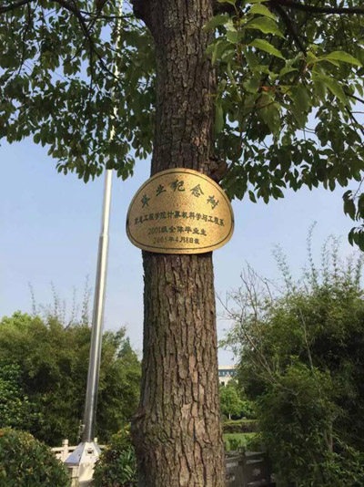 2015年5月9日,信息工程学院2001级计算机科学0102班校友返校开展毕业十周年聚会活动。计科0102班的校友们回校参观了曾经学习、生活过的校园,并在毕业时种下的毕业纪念树前合影留念。