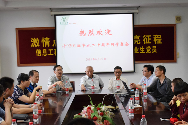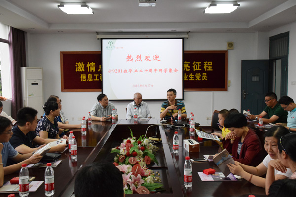 2015年6月27日,在浓郁着离别情怀的毕业季,信息工程学院迎来了计算机及应用专业计9201班校友毕业20周年返校聚会。校友们从全国各地返回母校,师生相聚一堂,共叙美好时光。校对外联络工作委员会秘书长、副校级调研员钱晓勤,信息工程学院院长李斌,校友总会副秘书长王志健,信息工程学院党委副书记吴刚,班主任及部分任课老师应邀出席相关活动。