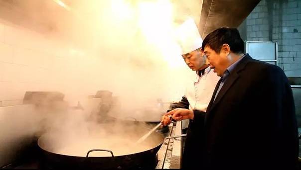 我校烹饪工艺专业1978届校友、“非遗”东台鱼汤面第五代传人徐正宽在指导熬制鱼汤