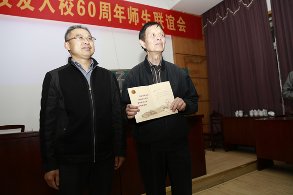 叶柏森在致辞中对各位校友不远千万里在入校60周年之际重返母校表示热烈欢迎,对校友们毕业后奔赴祖国各地为国家建设作出重要贡献、为母校赢得声誉表示衷心感谢,对校友们长期以来关心、支持母校建设发展表示诚挚的谢意。叶柏森向校友们详细介绍了学校的办学历史和事业发展情况,祝各位校友永远健康、天天快乐,欢迎校友们常回母校看看!