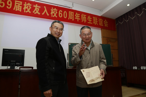 联谊会上,校友们踊跃发言,一些由于种种原因未能参会的同学也委托老同学带来了祝贺和祝愿。流年易逝,不忘初衷。校友们深情回忆了57年前在简陋的教室里的孜孜不倦、在拥挤的宿舍里的欢声笑语、在清晨校园里的朗朗书声、在实践锻炼中的争先恐后;回顾了毕业后在“党的需要就是我的志愿”的口号下远离家乡,奔赴祖国最需要的地方,在各自的岗位上艰苦奋斗的历程;表达了以母校为荣、为母校争光的游子情怀。校友们对母校的培育表达深深的感恩,对母校事业的快速发展感到无比高兴,对母校的人才培养质量感到骄傲,纷纷祝愿母校事业发展蒸蒸日上!