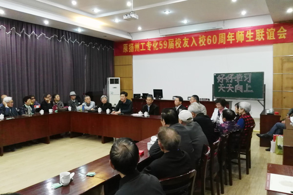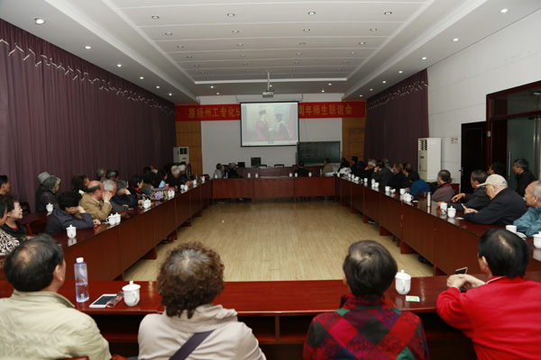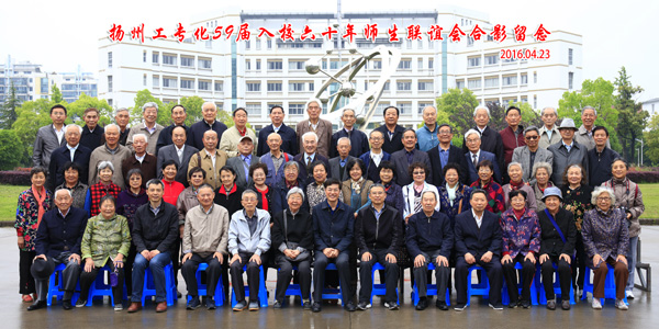 2016年4月23日,原扬州工业专科学校分析化学专业59届校友入校60周年师生联谊会在江阳路北校区行园会议室举行。校党委副书记、副校长叶柏森,化学化工学院党委书记刁国旺,校友总会副秘书长王志健,化学化工学院综合办公室主任周锋,老教师代表汪瑶同、夏伯钧应邀出席活动。大多接近甚至已至耄耋之年的60多位校友从祖国的四面八方汇聚母校,济济一堂,畅叙母校情、师生情、同窗情,共同观看《光荣与梦想——扬州大学校友会专题片》,共同见证母校日新月异的发展变化。