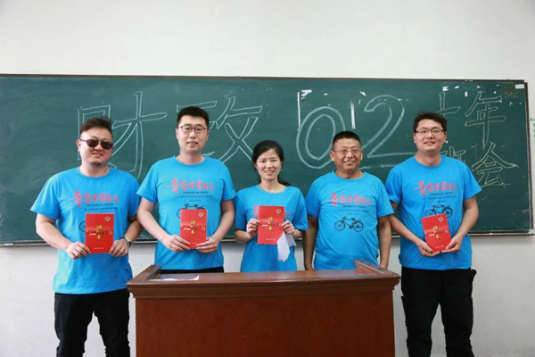5月1日上午,同学们一起参观了校园,重温往昔青春岁月。下午在荷花池校区教学主楼102教室,由班主任孙玉松老师主持召开了财政02级“回首十年”主题班会。在班会上,大家畅聊青春,分享感悟,逐个介绍了自己10年来的工作和事业、家庭和生活。十年光阴,大家已经从意气风发的青年,成为各自岗位上独当一面的能手和中层领导,成为企业的管理者,成为社会的中坚力量,成为各自家庭的顶梁柱。但永远不变的是对母校的感恩和同学们彼此间的一往情深。班主任孙玉松老师总结道:“每个同学的十年经历就是一段不平凡的故事,都是值得静心聆听的成长传奇;期待同学们下一个十年的健康平安、踏实平凡、与众不同的精彩人生。”班会结束后,孙玉松老师代表校友会向石火培、杨锐、吴鲁怀、陈铭等四位同学颁发了校友联络员聘书,并向每一位同学赠送了校友徽章。