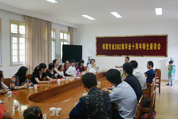 2016年5月14日,社会发展学院档案专业2002级校友毕业10周年返校聚会,校友们首先参观了曾经学习生活四年的瘦西湖校区,随后召开了师生座谈会。校友们对母校十年来在学科、师资队伍、人才培养及社会服务等方面取得的成绩感到骄傲,并表示在今后的工作中,会更加关注和支持母校的事业发展。