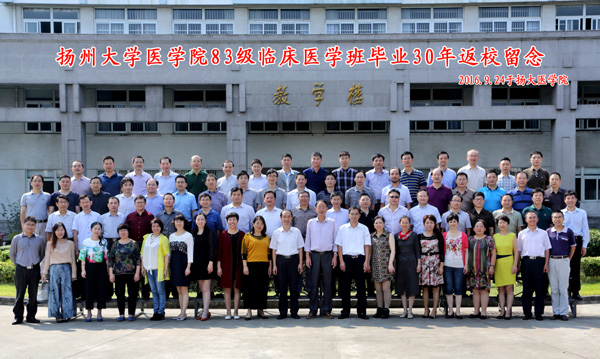 2016年9月24日,医学院83级临床医学班80余名校友毕业30周年返校。校友们聚集在学院报告厅热烈交流,相互介绍了毕业后各自的工作、生活情况,三名校友代表深情回忆了三十年间求学、工作的点点滴滴,感谢老师们的谆谆教诲和同学们的相互帮助。随后,校友们参观了学院,在曾经学习生活过的校园里频频合影留念。医学院党委书记王炜、副院长鞠永熙以及部分任课教师代表出席。