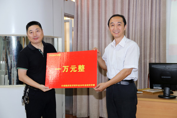 活动中,校友们向吴登云奖学金捐款10000元,王炜书记向校友代表颁发了捐赠荣誉证书,鞠永熙副院长向校友们颁发了校友徽章。