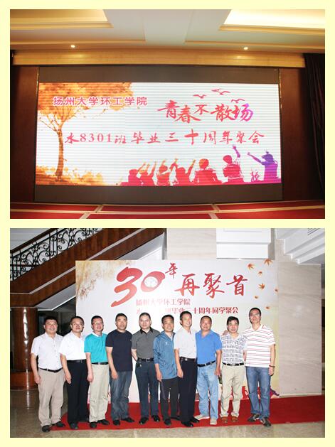2016年8月26日下午,经历久久的期盼,带着盛夏火一般的热情,水8301班校友携家属40多人相聚扬城,参加“青春不散场、我和母校共成长”为主题的扬大环工学院水8301班毕业三十周年返校感恩之旅。