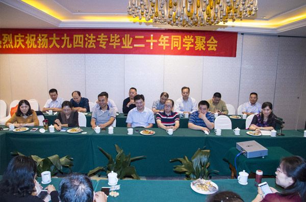 下午2:30,94法专毕业20周年返校座谈会在法学院举行。法学院院长王承堂、党委副书记花瑞锋、副院长曲昇霞、教师代表张毅辉等参加座谈会。座谈会在轻松愉快的氛围中进行。