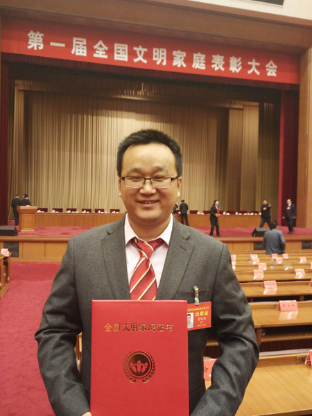 董淑猛校友家庭喜获“第一届全国文明家庭”殊荣 董淑猛领奖受到总书记接见