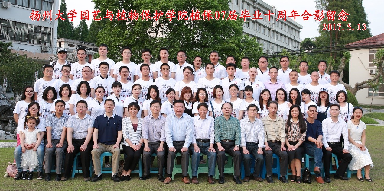 2017年5月13-14日,扬州大学植物保护专业的60余名校友毕业10周年重返母校,共享欢聚时光。园艺与植物保护原院长杨益众教授,院长刘芳教授,院党委副书记刘继平(主持工作),院党委副书记周超,副院长杨国庆,院办公室主任刘长平及部分任课教师应邀参加了聚会活动。