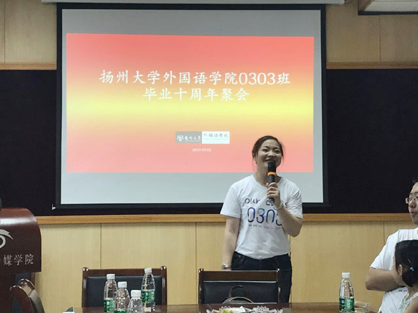 十年再聚首,没有太多的兴奋与激动,因为我们常常联络,在QQ和朋友圈里隔空关注彼此的成长与近况。同宿舍的姐妹们更保持着一年一聚的好传统。但我们仍然感动,感动于老师们如父如母如兄长般的关怀寄语,感动于十年后仍相亲相爱团结一心的班级氛围,感动于组委会同学默默无闻不辞辛苦的筹备与策划,更感动于学校对我们的聚会如此重视专门安排校友会老师莅临支持。戴上校友徽章,像是完成了情感的托付。曾是扬大学子,永为扬大人。
