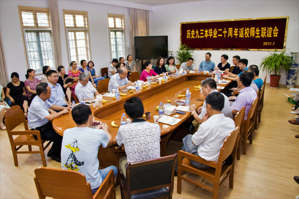 2017年7月29日,社会发展学院历史专业1997届校友举行毕业20周年返校聚会活动。虽然正值盛夏酷暑,校友们聚会热情却更为高涨。大家参观了瘦西湖校区校园,并在学院会议室举行了师生联谊会。原扬州大学副校长周新国,原系副主任秦国华,班主任、现任《新华日报》社总编辑双传学,社会发展学院党委书记吕红梅、党委副书记居再宏以及部分教师出席了联谊会。