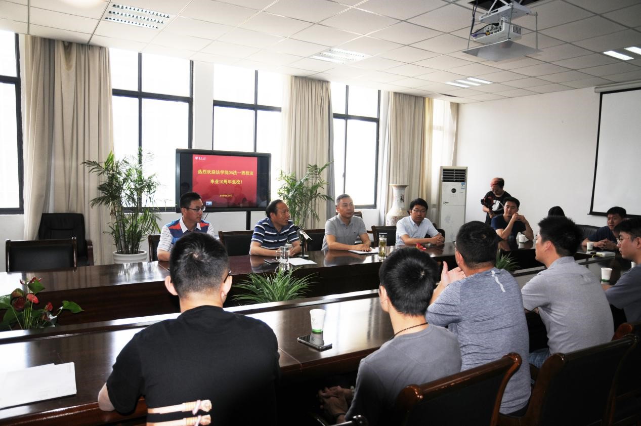 6月8日上午,法学院党委书记孙鹏、党委副书记花瑞锋,班主任张彦老师及法学院部分教师代表与校友们在法学院会议室举行师生茶话会。会上,孙鹏对校友们返校表示热烈欢迎,同时介绍了法学院近年来发展的情况。