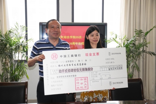 校友们逐个发言,回忆青春岁月、同窗情谊,纷纷慨叹十年光阴荏苒。为表达对母校和老师们的感激之情,校友们捐资6000余元注入“法学院校友奖助学基金”。
