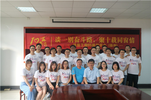 6月15日,怀着对母校的眷恋以及对同窗的思念,通信工程80501班同学们返回母校,举行毕业10周年聚会活动,广陵学院校友工作办公室张建国老师、班主任王华老师应邀参加活动。