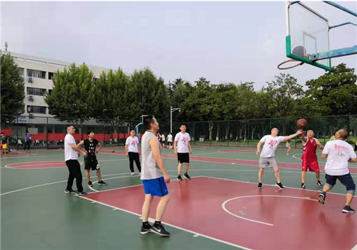 男同学们自发组织了一场篮球赛,重温当年叱咤球场的风光。