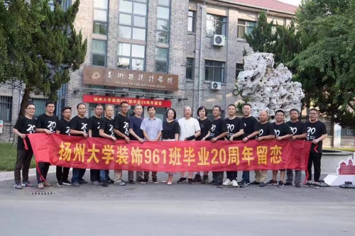 时光荏苒,岁月如歌。又一次十年的分别,阻挡不住我们思念的脚步。为了寻找心中那份珍藏许久的记忆,近日,装饰961班同学们汇聚江阳路南校区校园,举行毕业20周年返校聚会活动。同学们身着黑色文化衫,一起回忆在校时的青葱岁月,交流工作中的感悟,畅谈人生的美好未来。