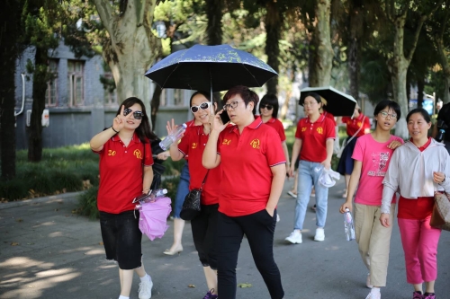 回校期间,全体同学在班主任王志健老师的引领下,兴致勃勃地故地重游。读书时的工学院主楼,朴实依旧的阅览室,承载着青葱岁月满满回忆、见证扬大发展历程的熟悉而陌生的宿舍楼和水泥路……一切都是那么亲切,一切还是那么美好!……“扬大现在发展到29个学院啦!现在这边是医学院教学楼……”“啊!这组雕塑还在。毕业照就在这里拍过。”……师生边走边聊,有说有笑,感慨岁月流逝无情,师生情谊与日俱增,久而弥笃;惊叹于扬州大学办学理念之新、质态之高、发展之快。