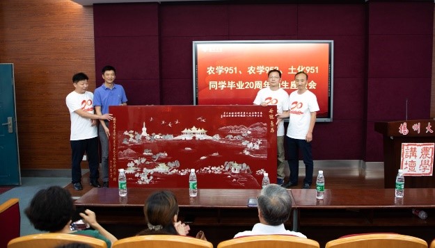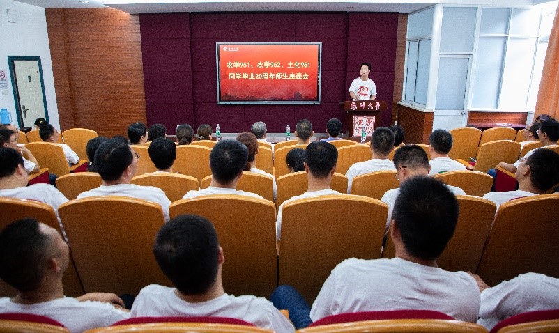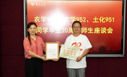光阴荏苒,岁月如歌,二十载同窗谊、母校情。2019年8月24日至25日,扬州大学农学院农学951、农学952、土化951三个班的校友从各地赶来,相聚文汇路校区,举行了毕业20周年返校聚会活动。农学院党委书记王庆林、院长严长杰、党委常务副书记王军,环境科学与工程学院常务副院长王小治,校对外联络办公室副主任王秀琴,时任辅导员、苏州市农科院副院长董明辉,农学院党委副书记陆江锋,副院长陈源、高辉,环境科学与工程学院副院长赵海涛、农学951班班主任金银根老师、农学952班班主任张敬华老师、土化951班班主任刘爱华老师等应邀参加了活动。